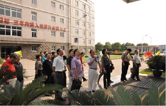 采訪團(tuán)一行參觀了公司樣品展示廳、企業(yè)文化展示、生產(chǎn)區(qū)以及廠容廠貌。華董事長向采訪團(tuán)簡要介紹了企業(yè)目前的生產(chǎn)形勢。