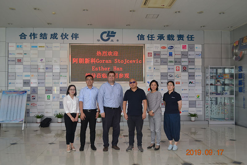 2019年9月17日,阿朗新科新加坡有限公司全球非輪胎產品經理Goran Stojcevic、亞太區(qū)技術服務與應用開發(fā)總監(jiān)Esther Han,以及中國區(qū)的技術經理蒞臨華蘭參觀交流,由公司總經理華一敏親自接待。